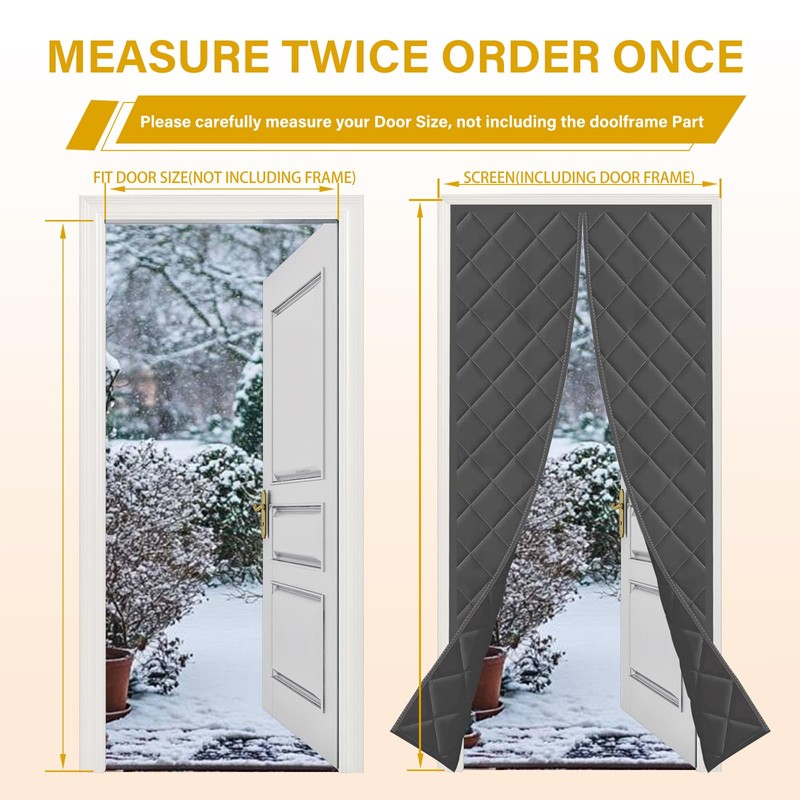 - Enhances Indoor Privacy & Comfort: Besides Blocking Out Cold Air, This Winter Door Cover Also Helps Regulate the Atmosphere of Your Home, Increasing Comfort All Year Round. The Magnetic Curtain Blocks Light, Quickly Divides Rooms, Reduces Outside Noise, and Prevents People from Seeing Inside Your Home