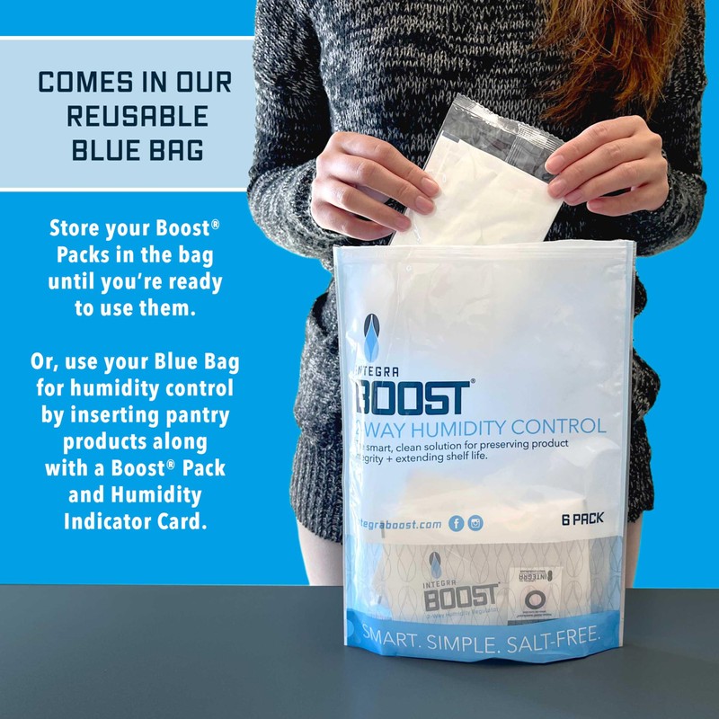 - PACK OF 6: This item contains 6 Boost Packs, each with individual overwrapping and a Humidity Indicator Card inside the overwrapping, and comes packaged in our signature blue resealable bag.