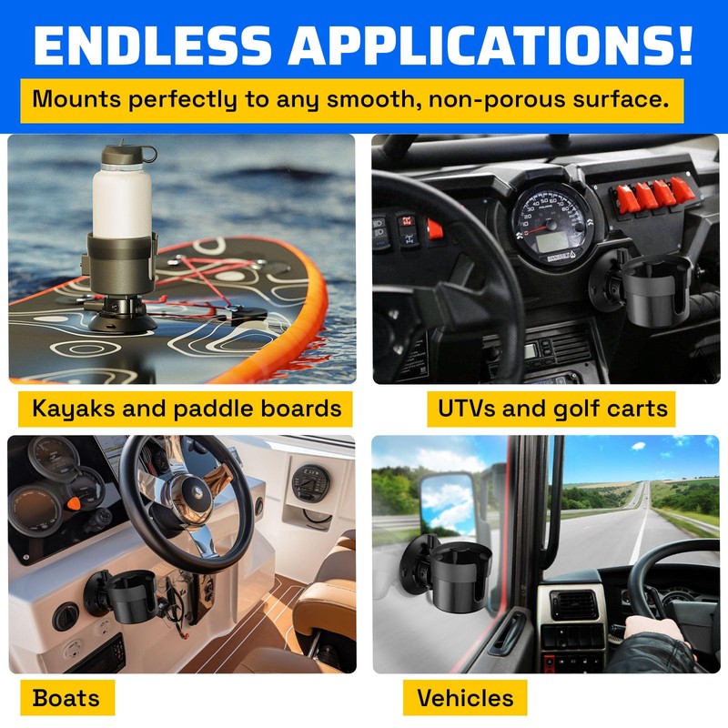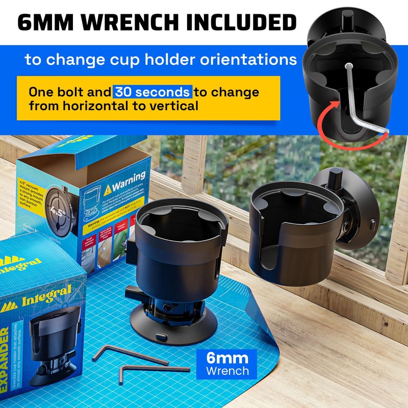 - INSTALLS AND REMOVES IN SECONDS - It couldn’t be easier! 2 steps & 5 seconds is all it takes to attach the Vacuum Expander to almost any surface. Simply push the vacuum pad against the surface and pump the vacuum pump a few times. No tools, no hardware, no problem. To remove, just pull up on the tabs located on each side of the cup. The cup holder can be mounted in the position of your choice, either horizontally or vertically. A 6mm wrench is included to easily swap positions.