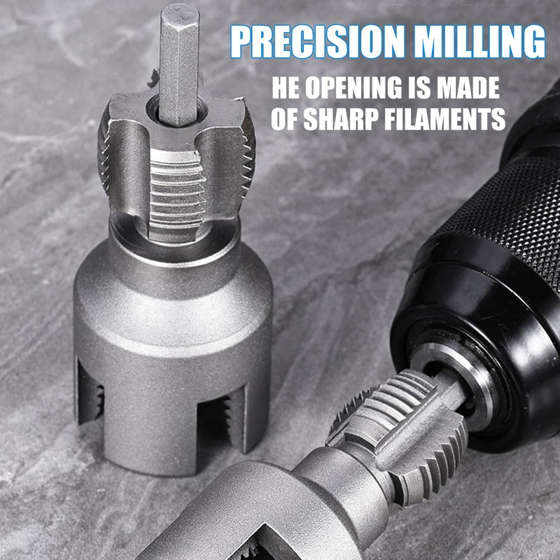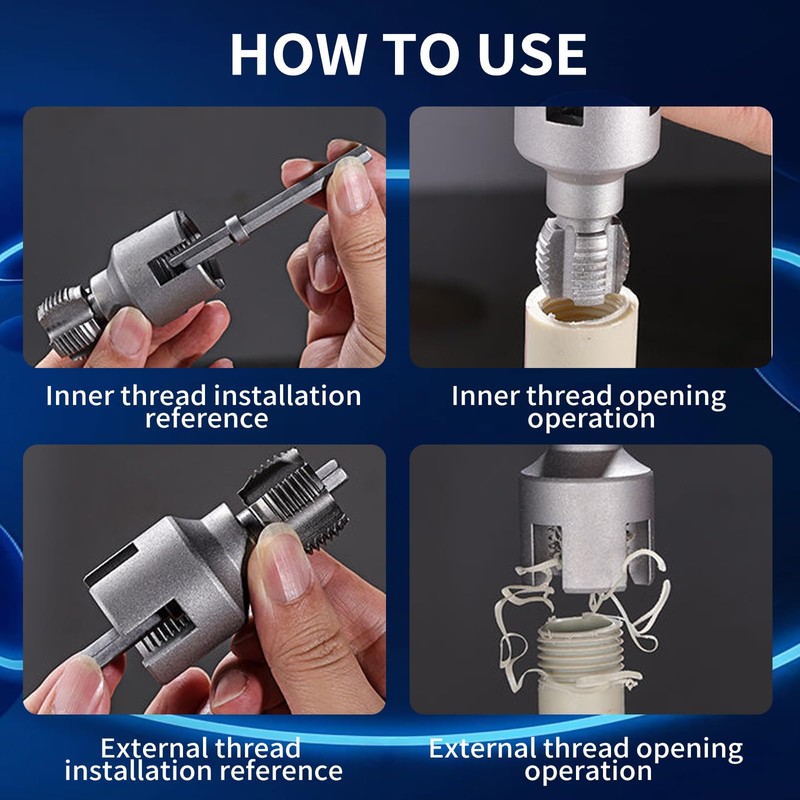 - Dual-Action Threading for Indoor/Outdoor Pipes:This threading kit effortlessly creates precise internal and external NPT threads on 3/4" pipes. Perfect for plumbing repairs, DIY projects, or electrical conduit installations. The hardened alloy steel construction ensures long-lasting durability, while the hex shank allows seamless attachment to standard electric drill (drill not included).