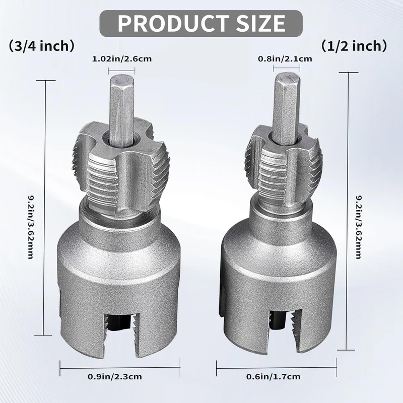 - Dual-Function Threading Comprehensive Kit:Create both internal and external threads with one tool - no need to switch. A variety of sizes for you to choose from, 1/2 inch or 3/4 inch. Perfect for fast, accurate pipe prep.