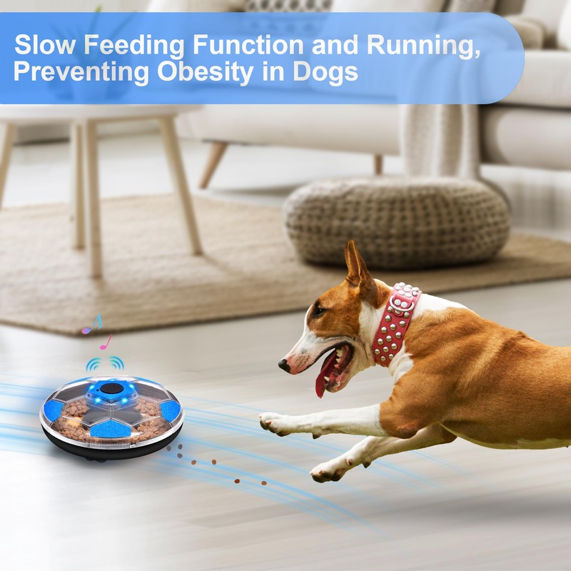 Interactive Dog Chasing and Slow Feeder Toy, Music and Lights, Blue and White (Black & Blue)