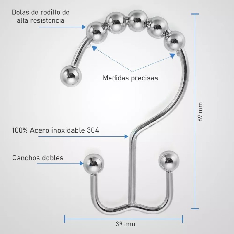 ACERO INOXIDABLE - La construcción de latón de alta resistencia y acero inoxidable duradero permite años de uso en los elementos de baño duros. Los ganchos de la cortina de ducha de acero inoxidable, metal no magnético, lo que significa que durará en interiores y exteriores sin oxidación.