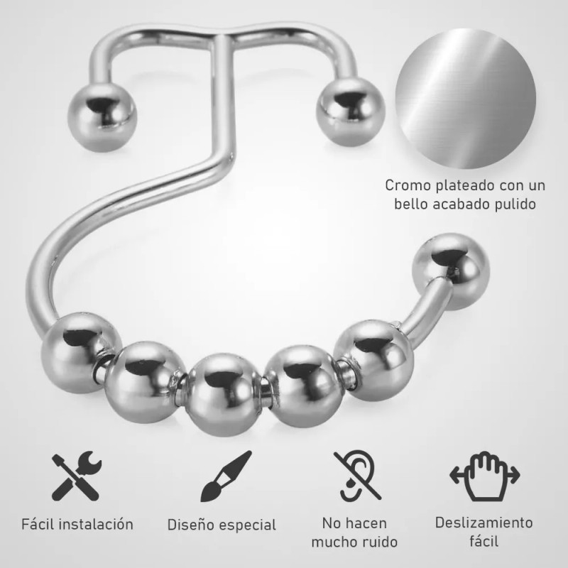 No se enganche; ningún esfuerzo; Sin molestia. Estos ganchos cuentan con bolas esféricas especialmente diseñadas para reducir la fricción y permitir un deslizamiento sin esfuerzo a través de la varilla prácticamente sin esfuerzo.