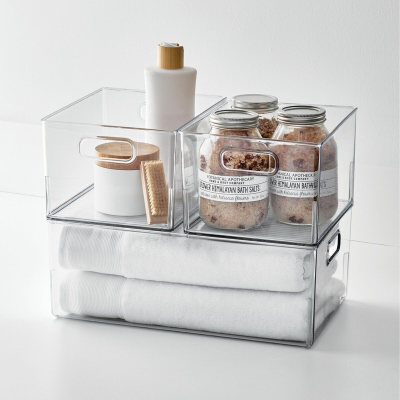 InterDesign iDesign Stackable Plastic Bathroom Storage Handles-Set of 4-Clear 10.53 x 8.26 x 6.24 Bin-Small M4