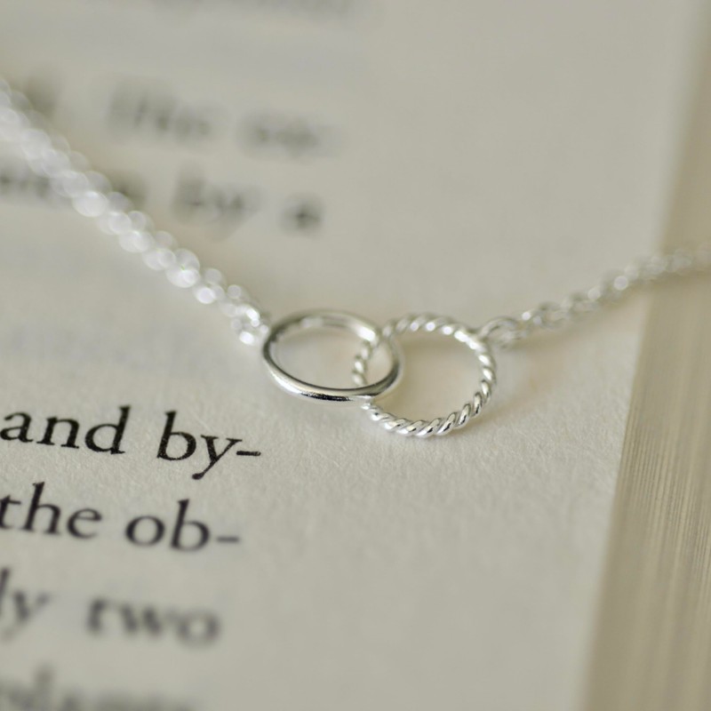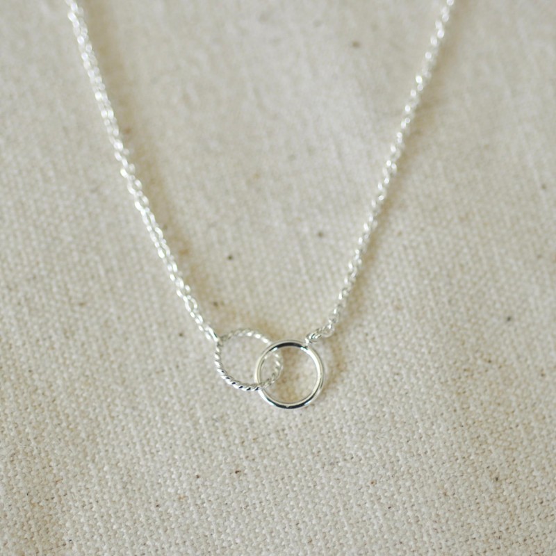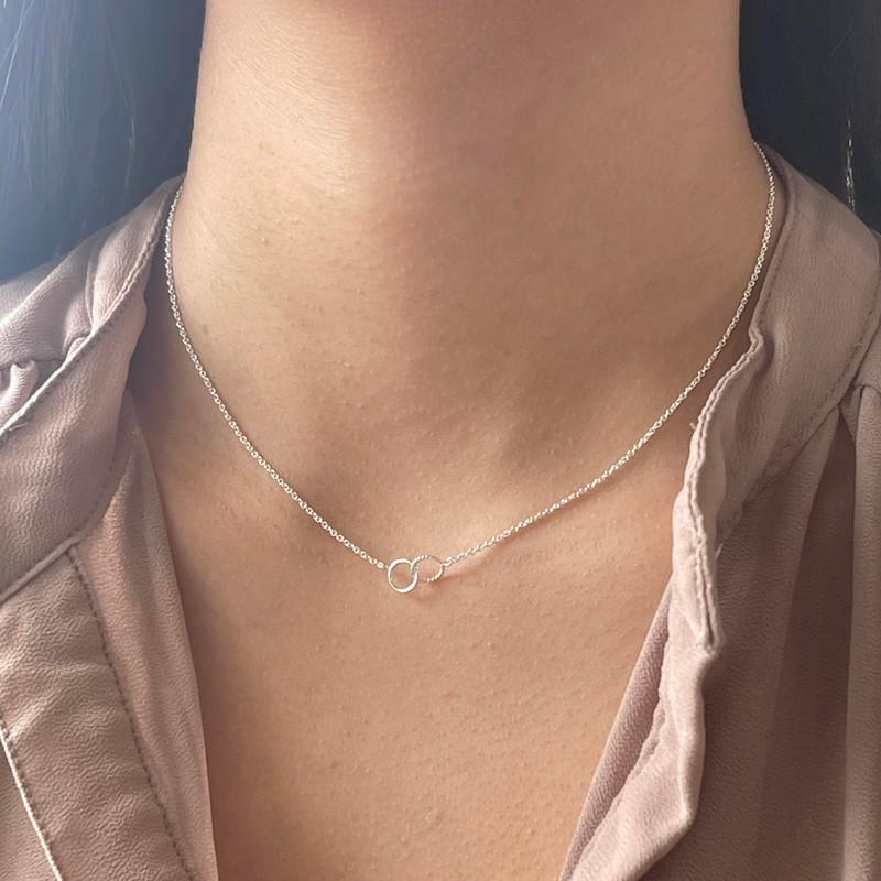 Interlocking Double Ring Friendship Love Necklace in Sterling Silver