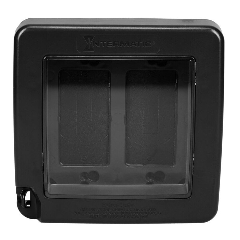 Intermatic WP7200BL Low-Profile Extra-Duty Weatherproof 2-Gang Cover, Black - Expandable Front Window, Versatile Mounting, Complete Installation Kit - Protect Outdoor Outlets - 2 Pack