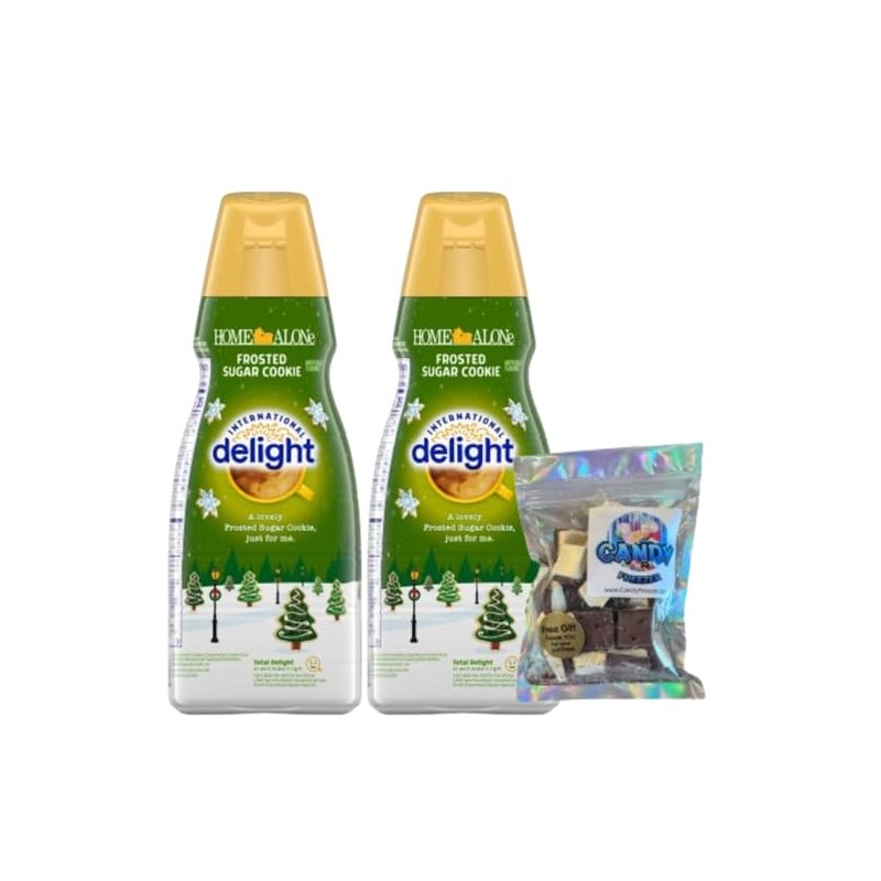 International-Delight Liquid Coffee Creamer.- Two (2) 32 fl oz Bottles of Smooth & Creamy Delightful Coffee Creamer and Candy Freezer Freeze Dried Ice Cream Bites (Frosted Sugar Cookie) - Candy
