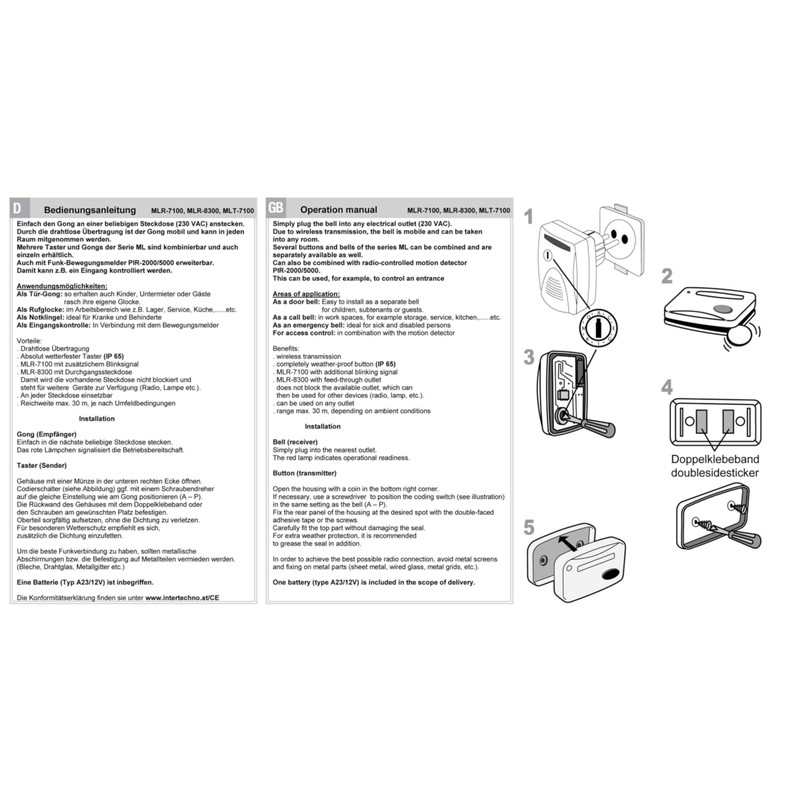 - This door chime with additional red flashing signal and weatherproof button is immediately ready for use. It can be taken into any room of the house and can be extended with the wireless bell ML-8300 as well as with other buttons MLT-7100 as well as the wireless motion detector PIR-5000. Applications: door chime: can be used for children, lodgers or guests. Call bell: at the workplace, such as warehouse, service, kitchen, etc. Emergency bell: ideal for the sick and the disabled. Gong and button are available individually for expansion.