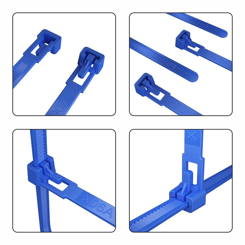 - Pack of 100 resealable cable ties from intervisio, dimensions 200 mm x 7.6 mm, blue, tensile force 22.2 kg, max. Bundle diameter: 50 mm