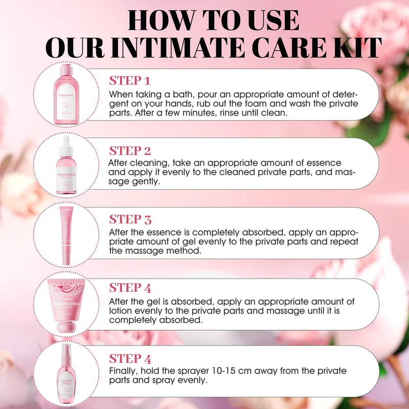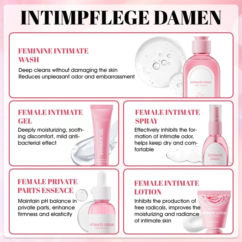- Kraftvolle Reinigung und Pflege: Intimpflege damen enthält Reinigungsflüssigkeit, Pflegegel, Pflegeessenz, Pflegelotion und Spray, die nach der Anwendung Trockenheit und andere Reizungen den ganzen Tag über lindern und vorbeugen.