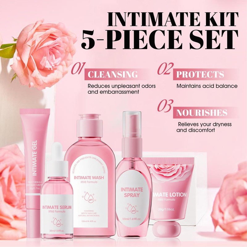 Intimpflege Damen, Intimwaschlotion Frauen Set con Waschlotion, Essenz, Care Gele, Schutzsalbe, Intimspray für Frauen, Schnelle Reinigung und Pfleges, 5 Artikel