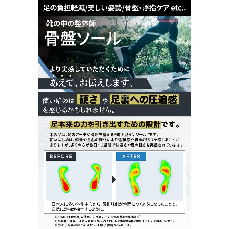 [Introduced by Terrestrial Waves] Pelvic Insole, Posture Support, Black, Shock Absorption, Next-to-foot Arch Heel TekuTech (Black, M: 9.4 - 10.2 inches (24 - 26.0 cm)