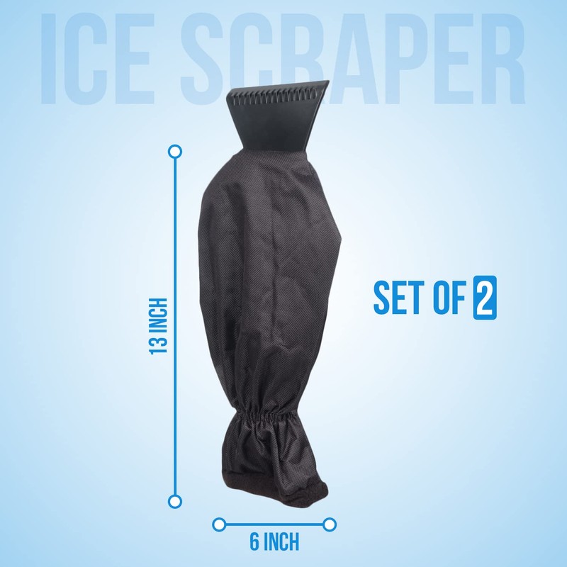 Invero Set of 2 Ice Scraper De-Icer Tool with Waterproof Glove Lined Thick Fleece for Cars, Vans and Pick Up Trucks - Scraper will Scrape Frost, Snow and Ice from Windscreens and Side Windows