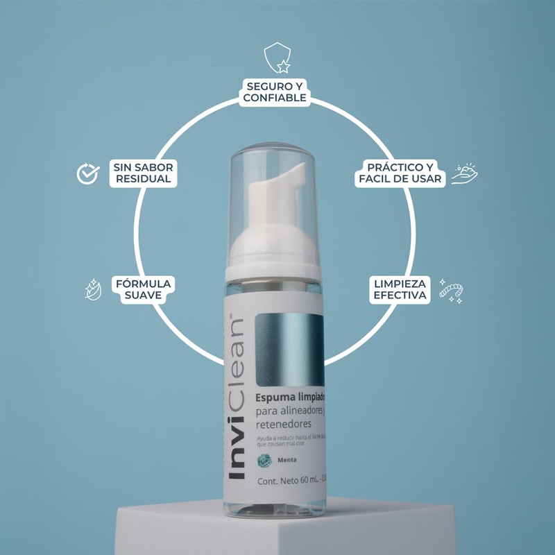 Inviclean - Espuma limpiadora para alineadores, retenedores y guardas dentales (60ml)