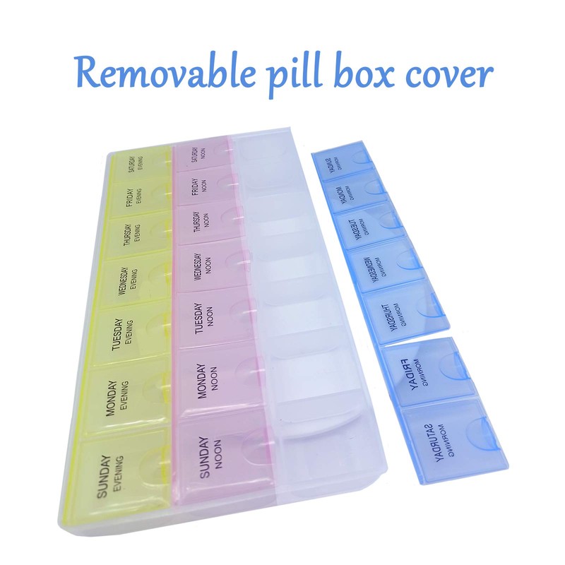 INVODA Pill Case 7 Day Weekly Pill Box with Medication Reminder Pill Organizer - Morning Noon Evening Daily 21 Detachable Compartments (3x7)