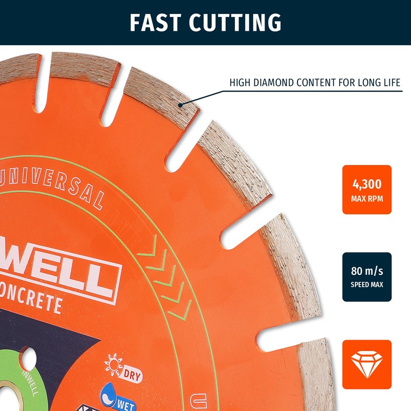 - Durable & Long-Lasting: 12mm segment height increases durability, High diamond content ensures a significantly longer lifespan compared to standard blades