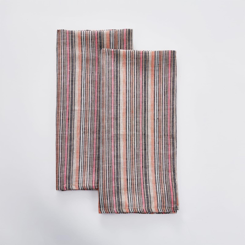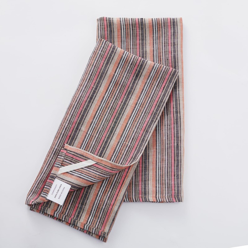INYOWAKI 100% Pure Flax Linen Kitchen Hand Towels Set of 2 - Quick Dry Extra Soft 20 x 27 Inch Stripe Tea Dish Towels for Restaurant Bathroom Decorative Guest- Hanging Loop-Orange Shadow Stripe