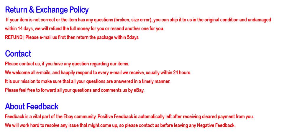If a return is sent back without prior contact or without our provided label, we cannot be held responsible for return shipping costs.