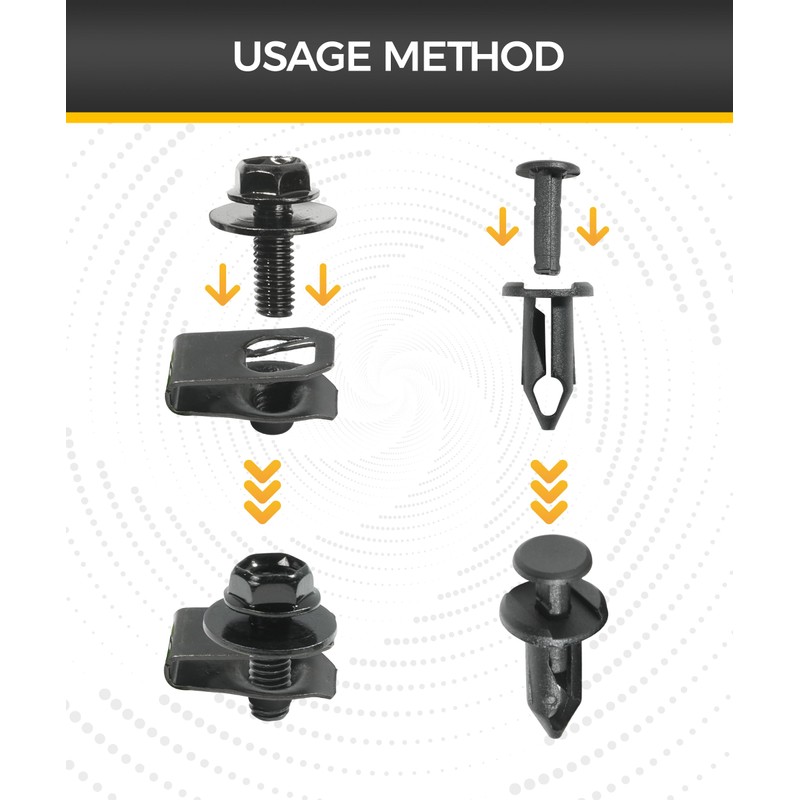 - [Wide Application]: The car fender bolt screw kit is suitable for most vehicles and is very suitable for car door trims, door panels, bumpers, fenders, engine covers and splash guards.