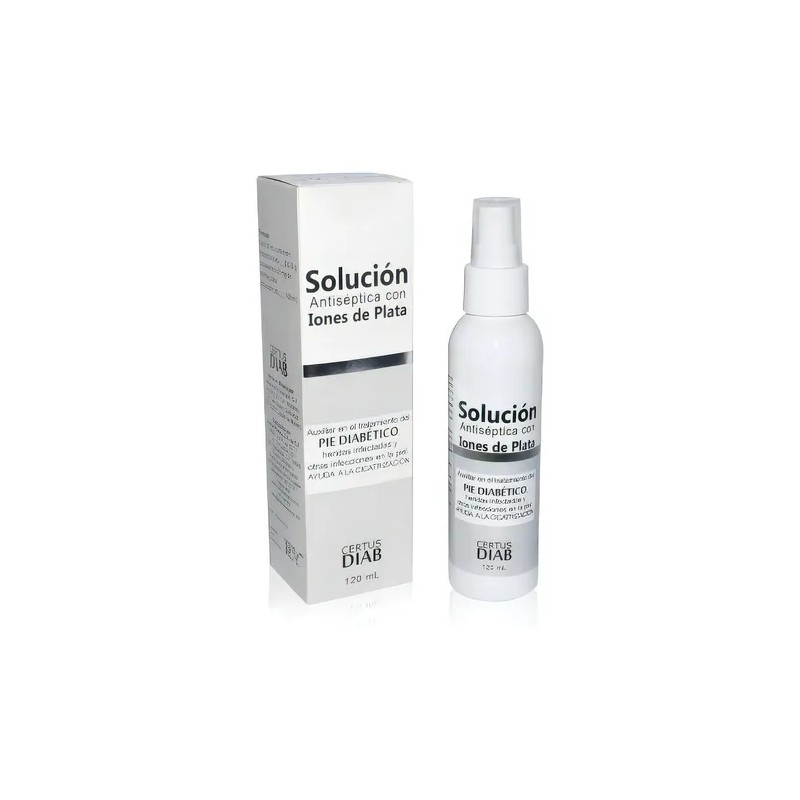 Soluión de Iones de Plata Certus Diab, especialmente diseñada para diabéticos. Con propiedades cicatrizantes, esta fórmula hipoalergénica es ideal para aplicar en todo el cuerpo, brindando cuidado y protección a la piel. Su presentación en botella de 120 mL garantiza un uso prolongado y efectivo. Además, su consistencia ligera y suave la hace perfecta para todo tipo de piel.