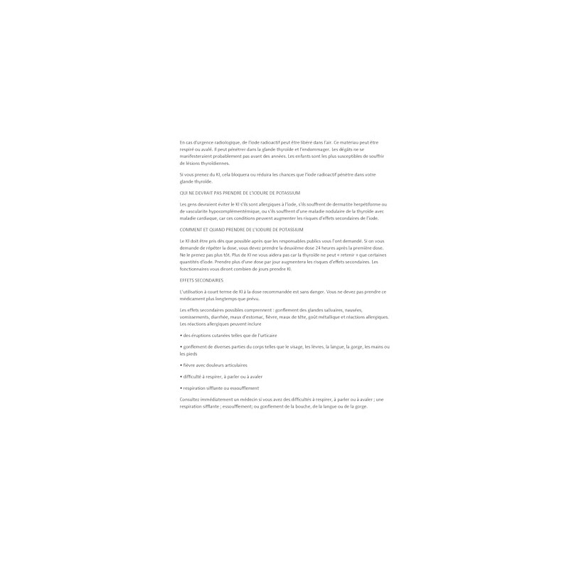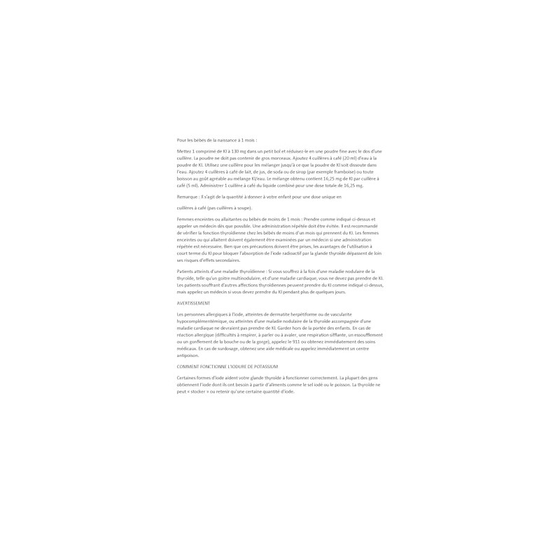 ✔ Protege la glándula tiroides de la absorción de yodo radiactivo en emergencias nucleares.