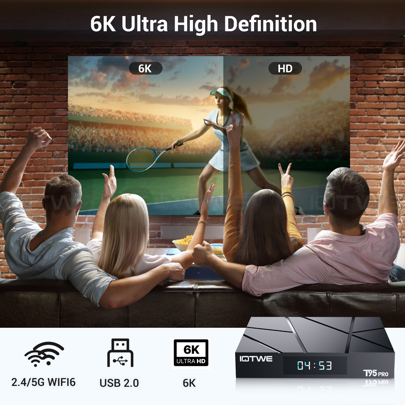 IOTWE Android 13.0 Upgraded Smart TV Box 5G WIFI6 6K 32/64/128GB 4 Core Media Player - 4+128GB