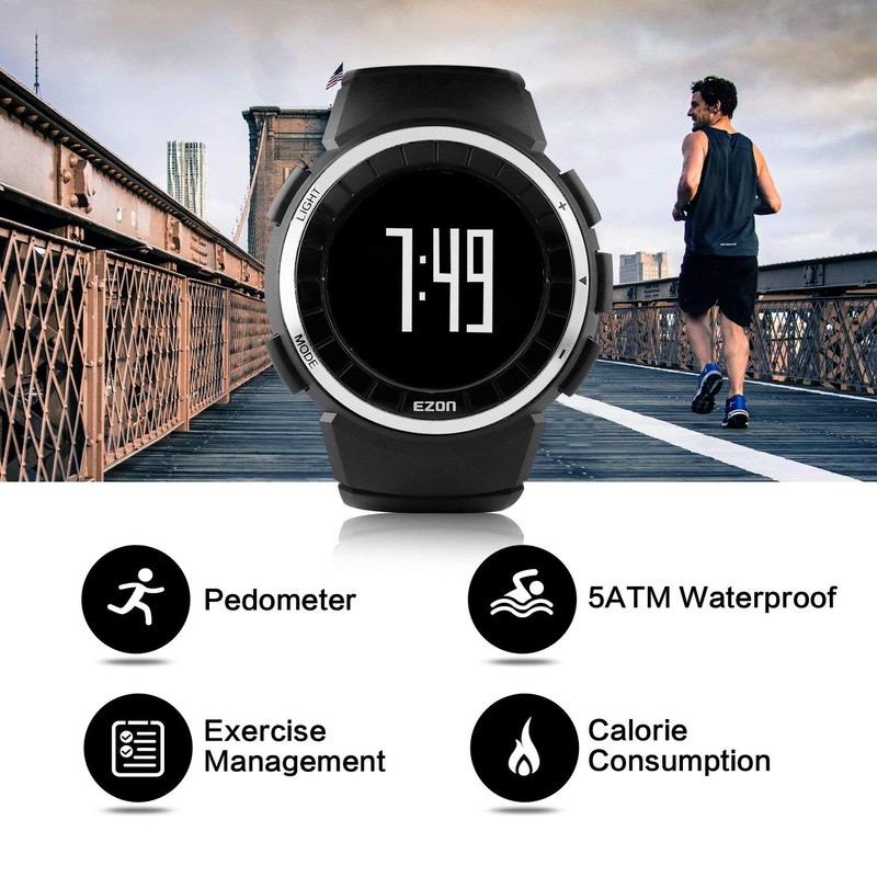 ランニングウォッチ スポーツウォッチ 歩数計 軽量 IP67防水防塵 大盤面表示 メンズウォッチ EZON T029B01