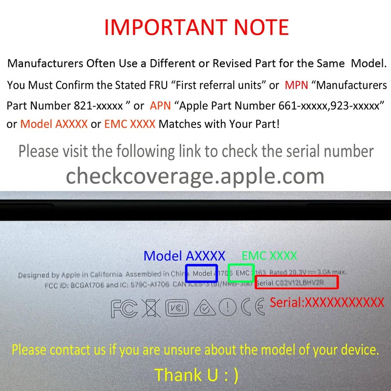 - 【Compatible Models】ONLY Compatible with Macbook Air 13.3 A1932 (EMC 3184),Order Number A1932 2018 Order Number: Order Number: MVFH2LL/A (128 GB Space Gray) MVFK2LL/A (128 GB Silver) MVFM2LL/A (128 GB Gold) MVFJ2LL/A (256 GB Space Gray) MVFL2LL/A (256 GB Silver) MVFN2LL/A (256 GB Gold) A1932 2019 A1932 2019 MVFH2LL/A (128 GB Space Gray) MVFK2LL/A (128 GB Silver) MVFM2LL/A (128 GB Gold) MVFJ2LL/A (256 GB Space Gray) MVFL2LL/A (256 GB Silver) MVFN2LL/A (256 GB Gold)