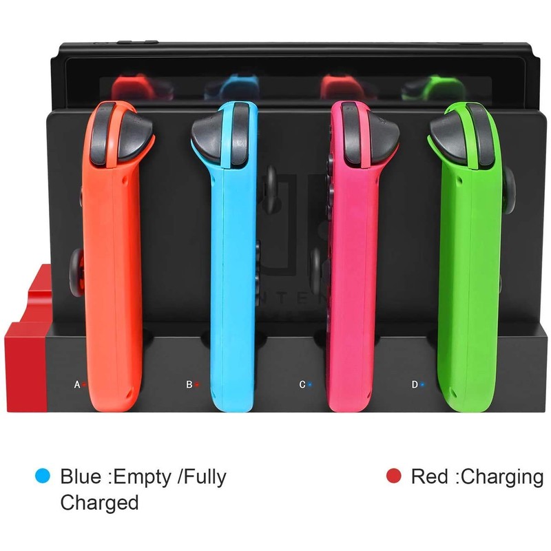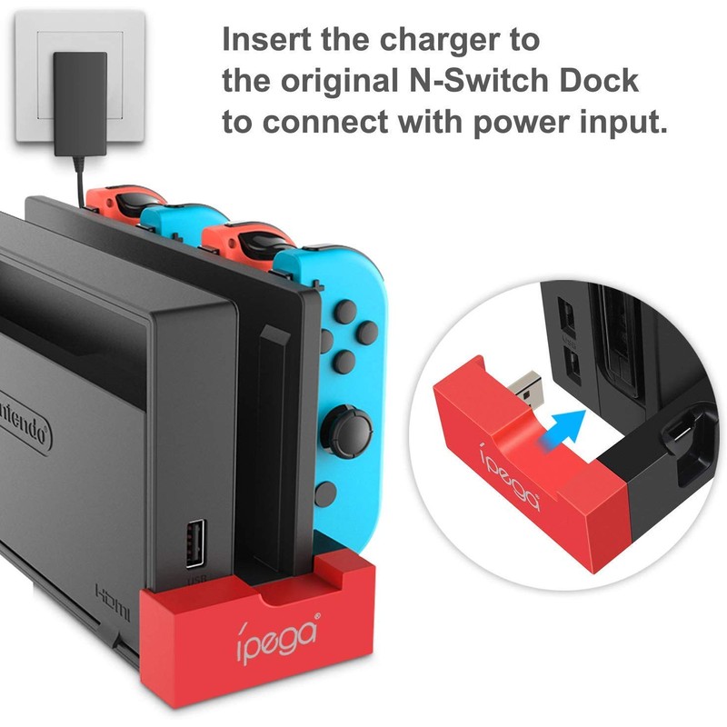 - Multi-functional Charging Stand: Equipped with a USB 2.0 male plug interface, supporting the N-Switch Dock original base, JoyCon handle for simultaneous charging of 1 to 4 simultaneously and provides power input to the product. The product is compact, simple and easy to operate, and it is integrated so it does not take up much space and can be stored and charged