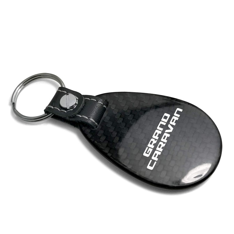 iPick Image Compatible with Dodge Grand Caravan Real Black Carbon Fiber with Leather Strap Large Tear Drop Key Chain