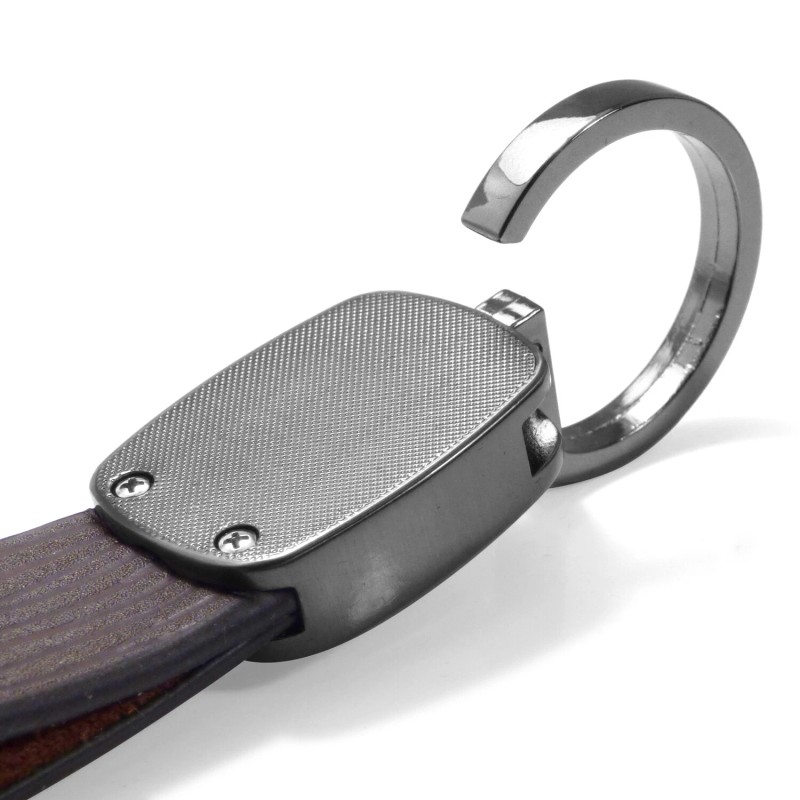 Top grade soft brown leather stripe and pull top hook with 3 rings for easy attach and release keys.
