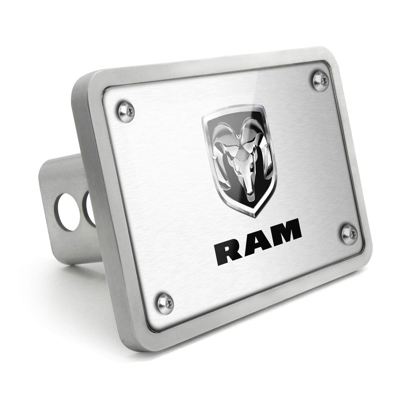 iPick Image - RAM Logo UV Graphic Brushed Silver Billet Aluminum 2" x 2" inch Tow Hitch Cover for SUV and Truck Made in USA