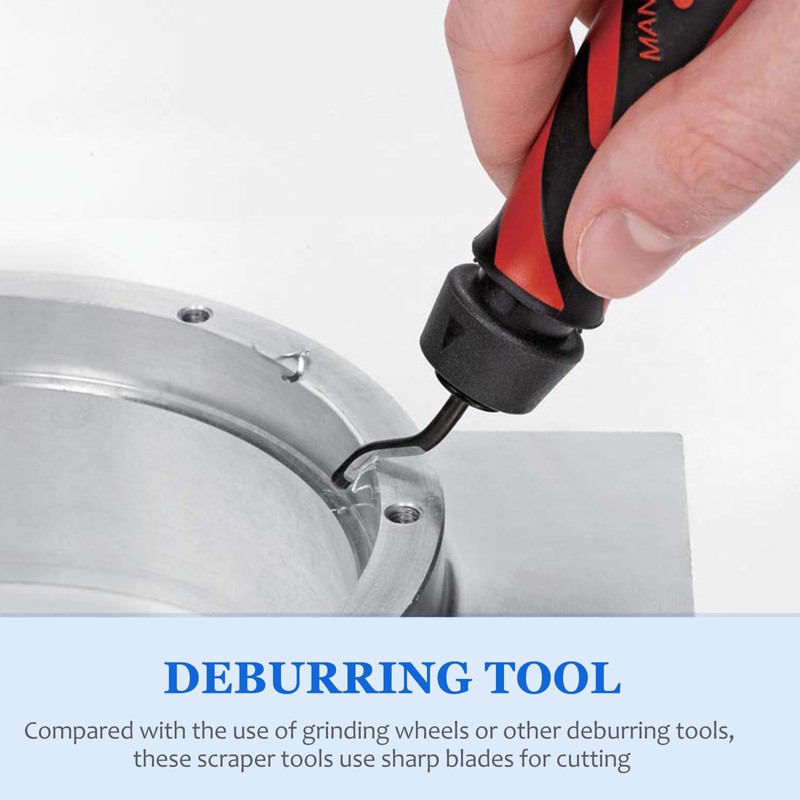 The products are made of which makes the edge sharpness and hardness and toughness excellent. There are 10 pieces deburring blades in deburring tool set. Designed for the circular holes edge, deep holes, straight edge, curved edges, slots. They are small in size, and you can wear it anywhere you want.