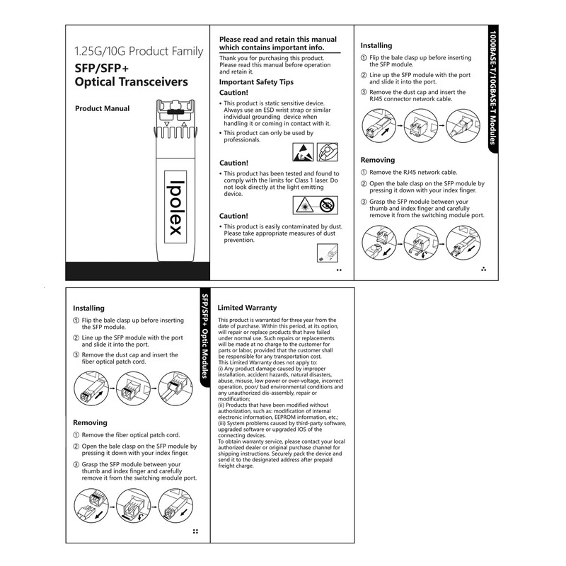 - Plug and Play, Hot Pluggable SFP+ MSA Compliant, Compliant with IEEE 802.3ae.