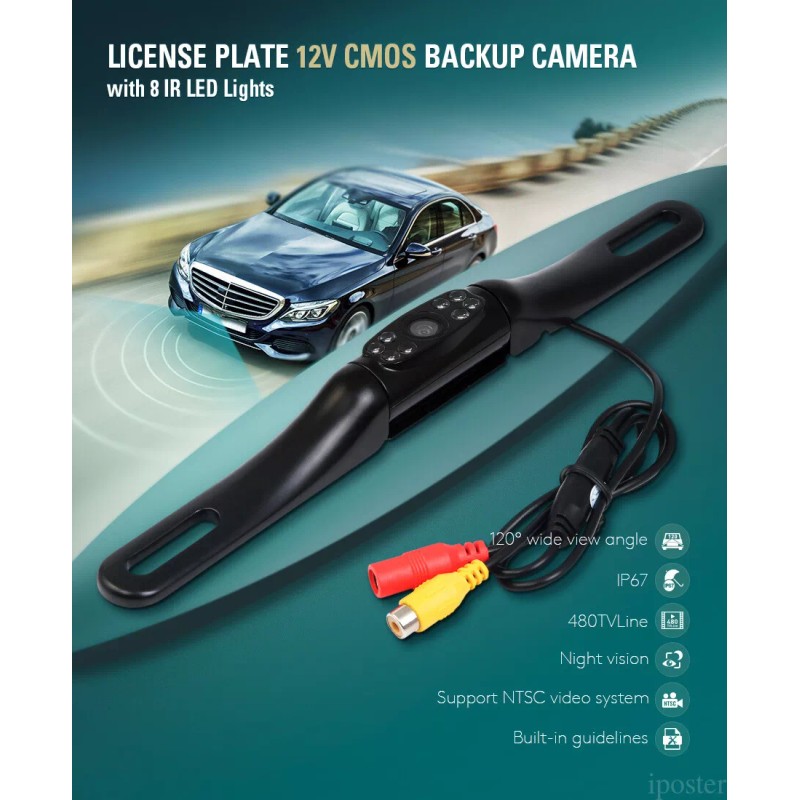 iPoster Car Front Rear View Backup Camera License Plate Waterproof Night Vision 12v 170°