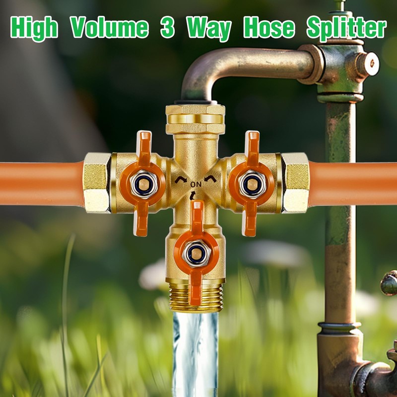 IPOW High Flow 3 Way Hose Splitter Valve with Long Handle Heavy Duty With Sta...