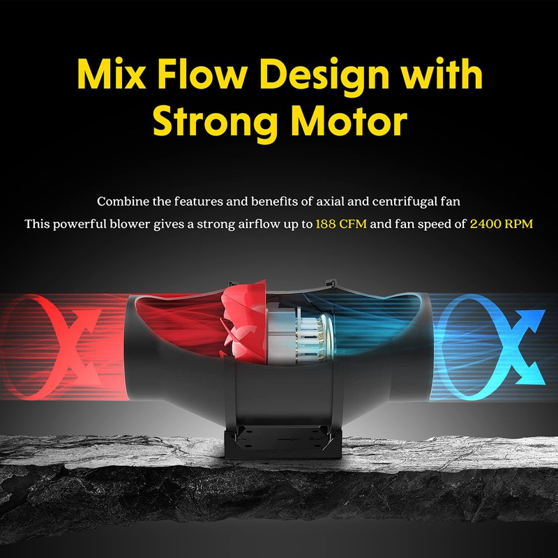 - Efficient fan: powerful blower with a fan speed of 2500 RPM for an air flow of 200 CFM. Moves air through your target location efficiently for optimal ventilation, effectively circulates air for room ventilation and odor purification