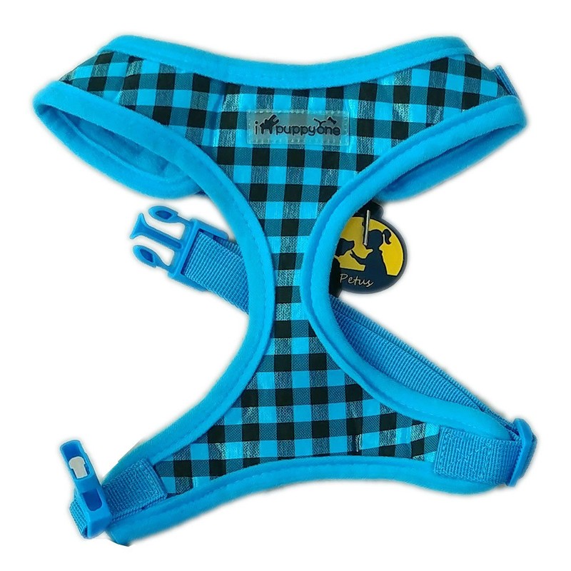 It can be sized with its resizable neck and chest belt to fit comfortably on your dog.Easy snap on and off. Not Mesh. Material : Polyester __________________________ |SIZE|NECK~|CHEST| __________________________ |XSMALL|7-9|10-14| |SMALL~|9-12~|14-16| |MEDIUM|12-14|15-20| |LARGE~|14-16|19-24|