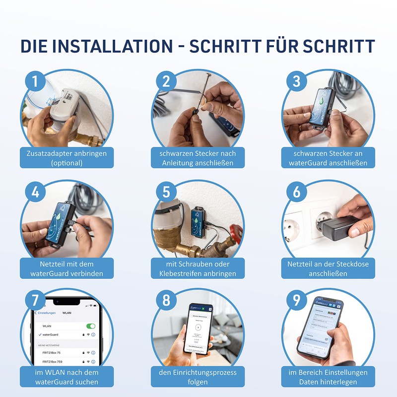 - Suitable for water meters with pulse interface – the iQ waterGuard is an innovative upgrade kit for water meters with pulse interface or water meter prepared for a pulse interface. Since you do not make any structural changes, you can install the waterGuard at any time and without hesitation. If your water meter does not have a pulse interface, your water supply can help you with an additional module that you additionally attach to the water meter.