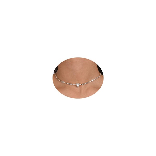 IQPDYV Rhinestone Heart Choker Necklace for Women Dainty Crystal Heart Necklace Tennis Chain Neclack Heart Statement Necklace for Women Birthday Party Prom Jewelry (Gold)