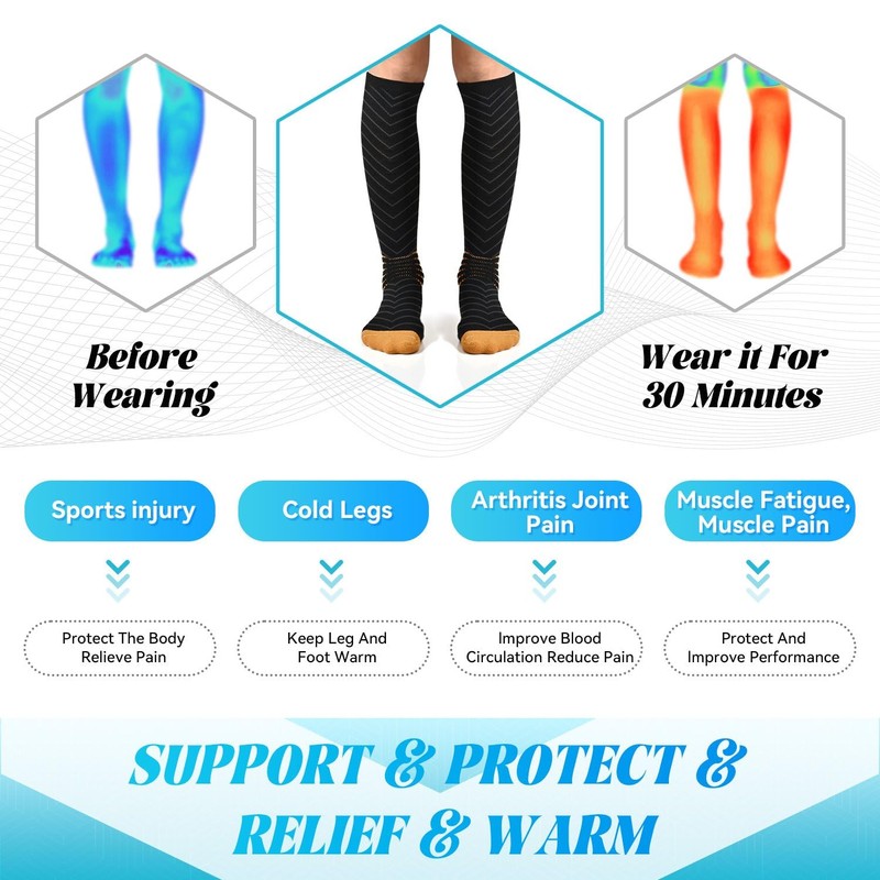 • V-Shape Compression Design:Engineered for peak performance, these compression socks feature a unique V-shaped compression from the knee to the foot , providing extra support and reducing fatigue during extended activities.