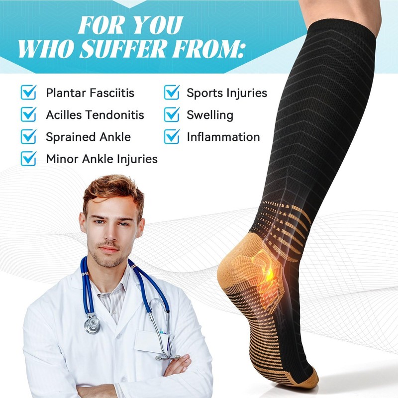 • Copper Infused Fiber for Better Circulation:Infused with copper fibers around the footbed, toes, and ankle, these socks help stimulate circulation, reduce muscle soreness, and minimize swelling, ensuring all-day comfort.