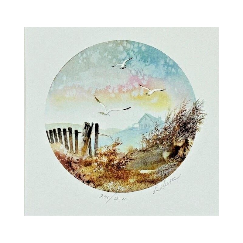 Irene Shore "Quiet Days" Hand Signed Limited edition CUSTOM FRAMED Seascape New!