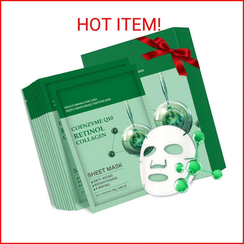IREV Pack of 10 Collagen Face Mask, Face Masks Skincare with Coenzyme Q10 Retinol Ant