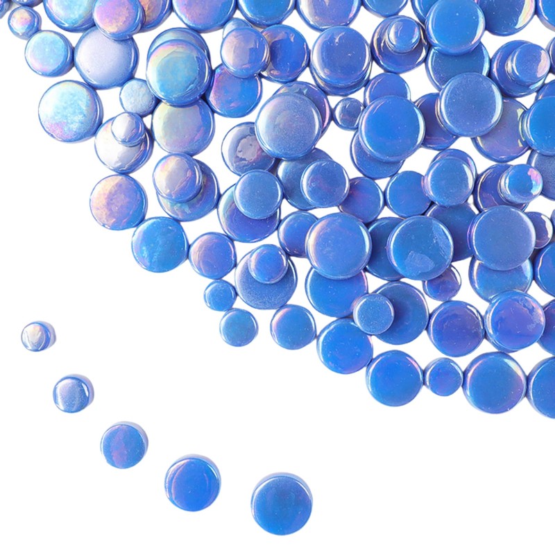 Iridescent Round Glass Mosaic Tiles for Crafts, 500g, Mini Circle Mosaic Glass Pieces for Flower Pots, Vases, Cups, Garden and Home Decoration, DIY Mosaic Accessories (Blue)