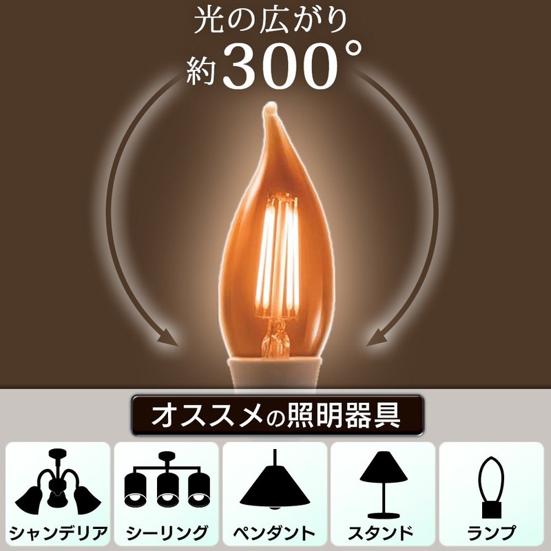 Iris Ohyama LED Bulb Filament Candelabra Screw Base Diameter 17 mm