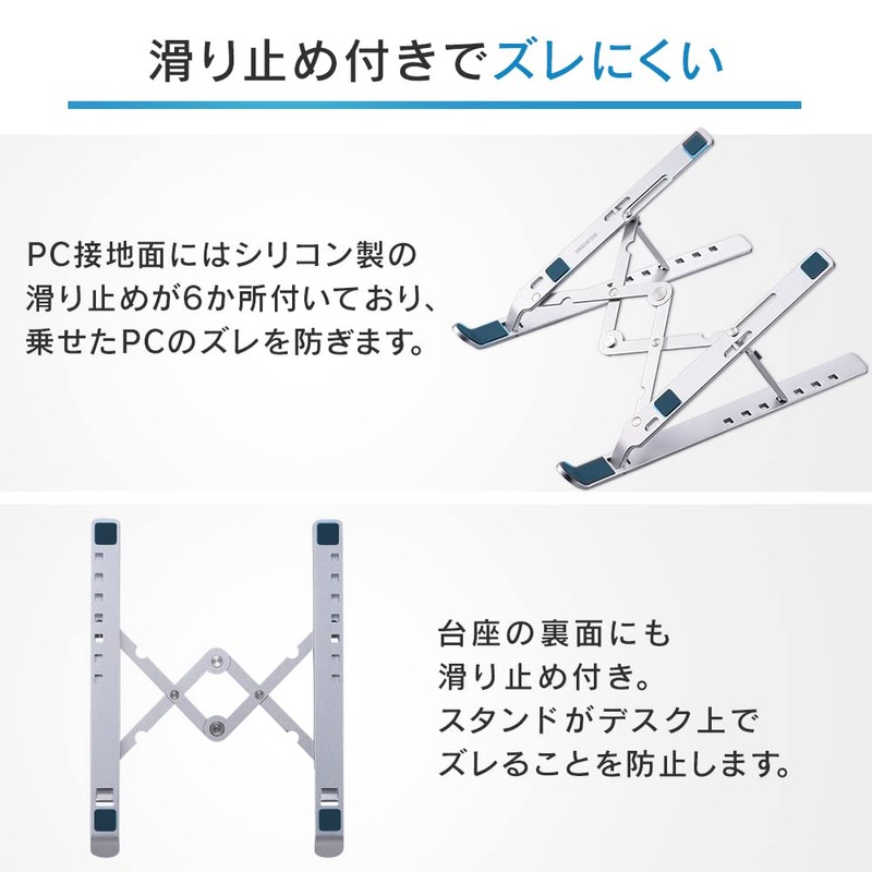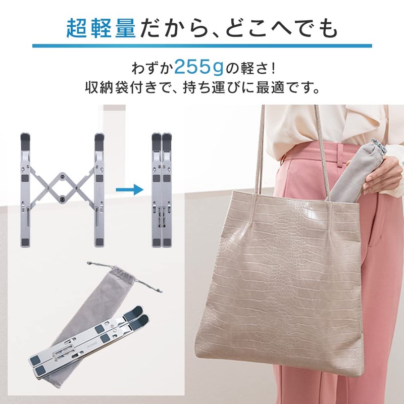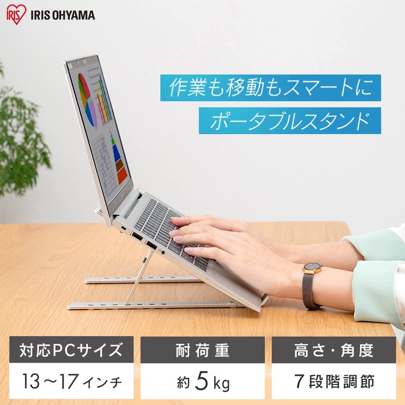 Iris Ohyama NPS-P Laptop Stand, Laptop Stand, Tablet Stand, Teacher Tablet, Height/Angle Adjustable, Posture Improvement, Foldable, Ultra Lightweight, Portable, Silver