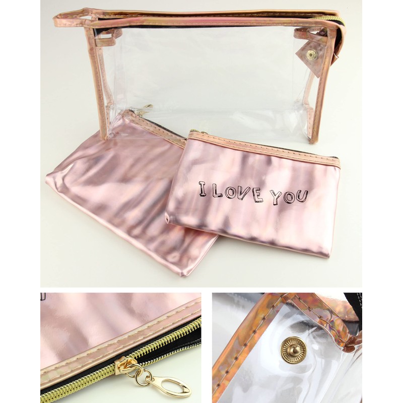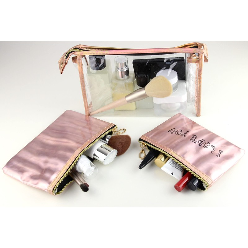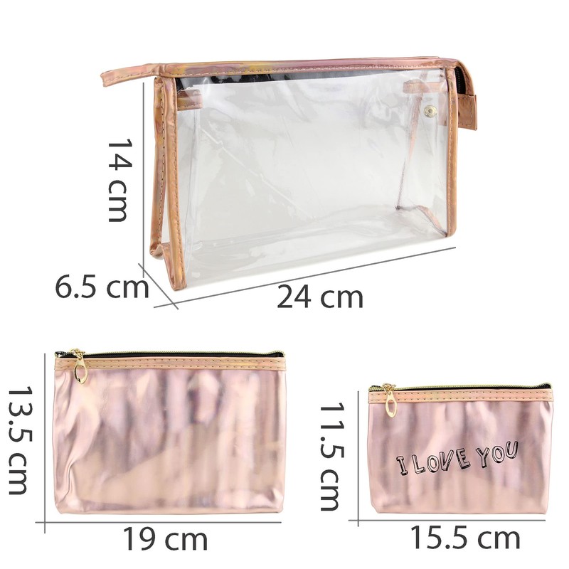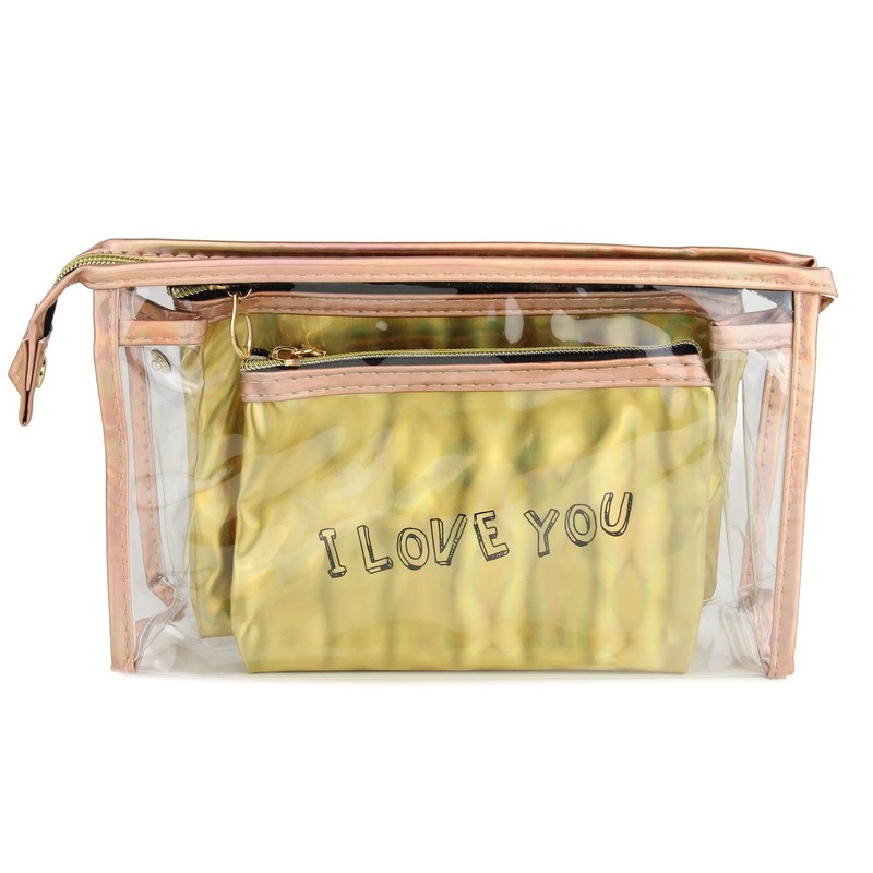 irisaa Toiletry Bag Set of 3, Transparent Cosmetic Bag Set, Transparent Toiletry Bag for Transporting Liquids, Mini Travel Bag, gold