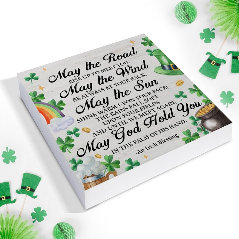 Irish Blessing Decor St. Patricks Day Decor, Rustic an Irish Blessing Wood Sign Home Tabletop Shelf Desk Decor, St Patricks Day Decorations, 5 X 5 Inches